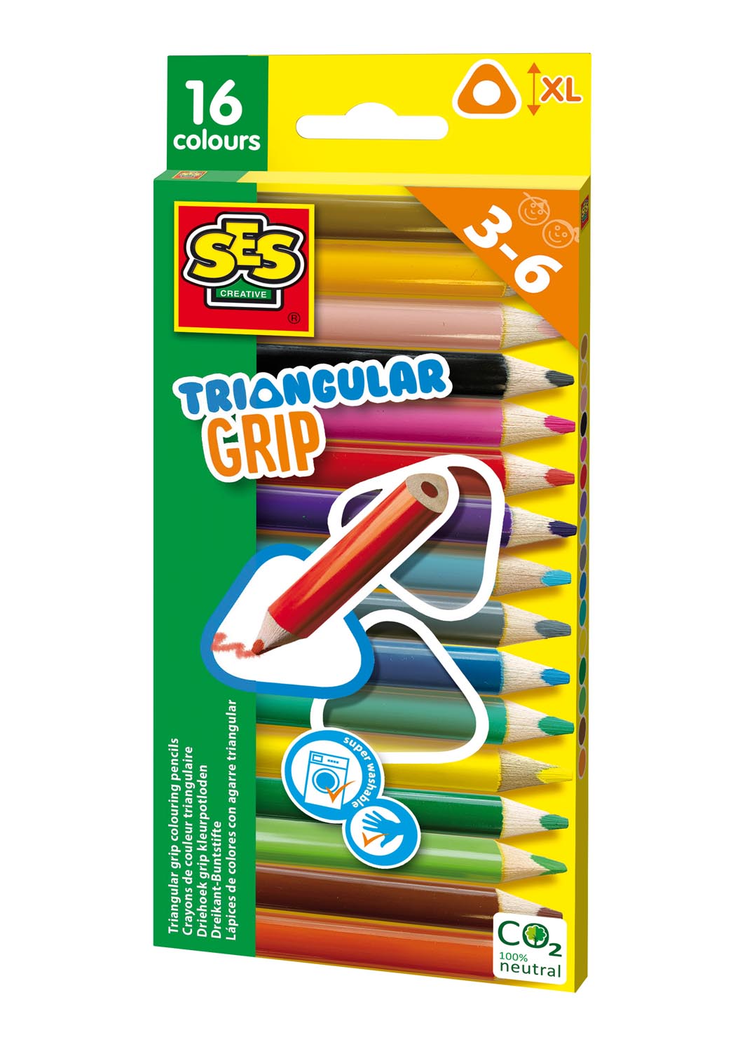 Háromszög alakú fogású színes ceruzák, 16 darab