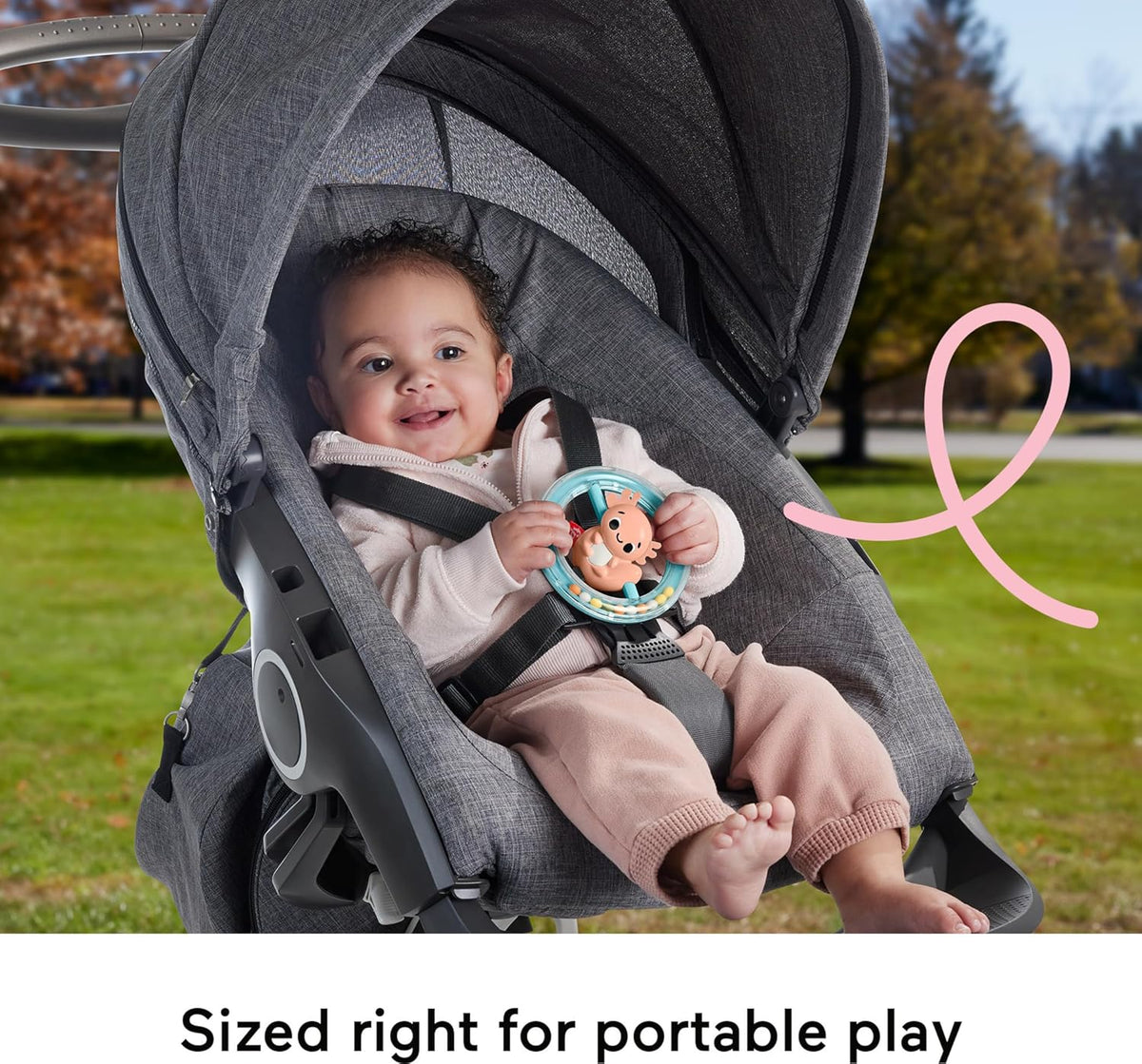 - Tartalmaz 1 csörgőt és egy forgatható játékot a szórakoztató ok-okozati játékhoz