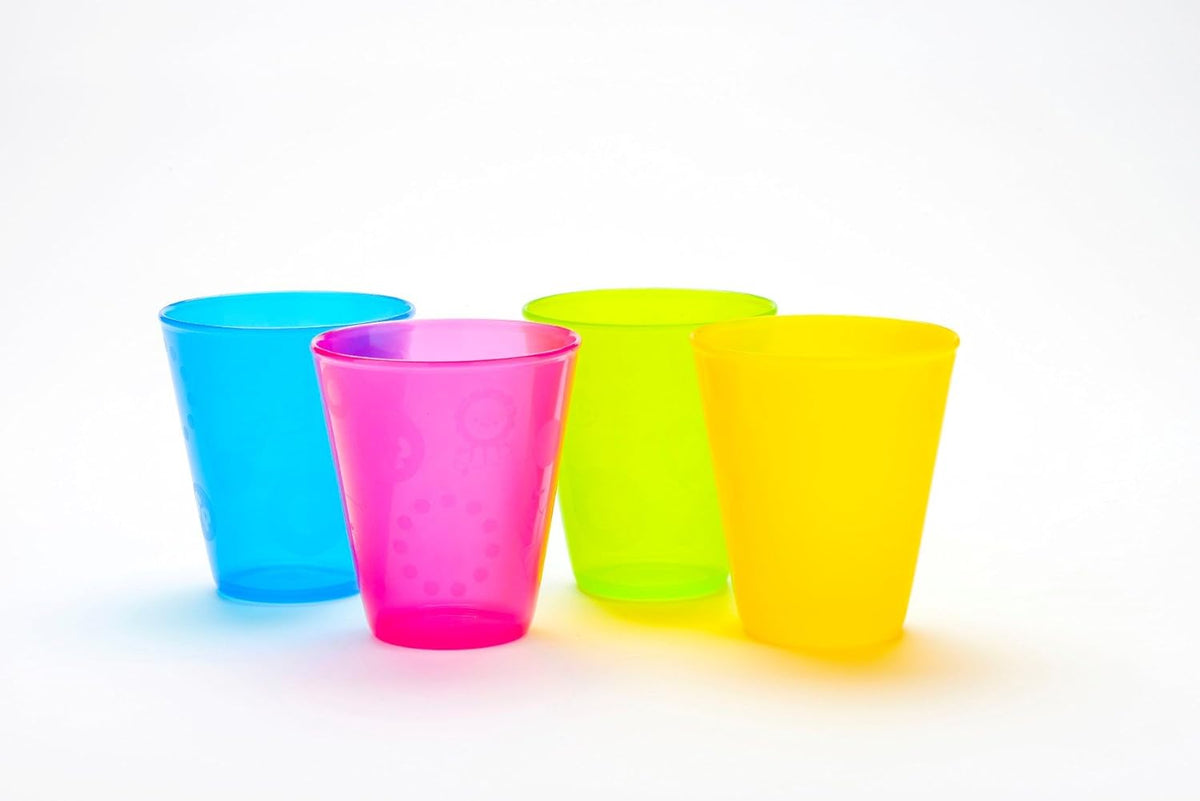 Csészék és tányérok kisgyermekeknek segítik a klasszikus csésze használatának elsajátítását, és megakadályozzák a véletlen kiömléseket. A csészék a tányéron (tálcán) vannak. A tányér puha, tapadó anyagból készült, amely bármilyen sík felületre, például asztalra vagy gyerekülésre rögzíthető. A szett biszfenol A-mentes, és mosogatógépben mosható. Ez a szett 4 csészét tartalmaz semleges színekben.