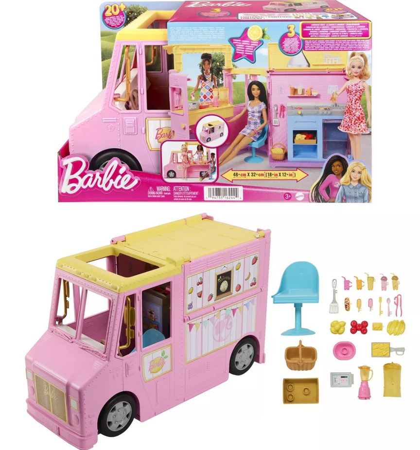 - Az aranyos esztétikával és számos menő kiegészítővel ez a Barbie® limonádé teherautó nagyszerű ajándék 3 éves és idősebb gyerekeknek!