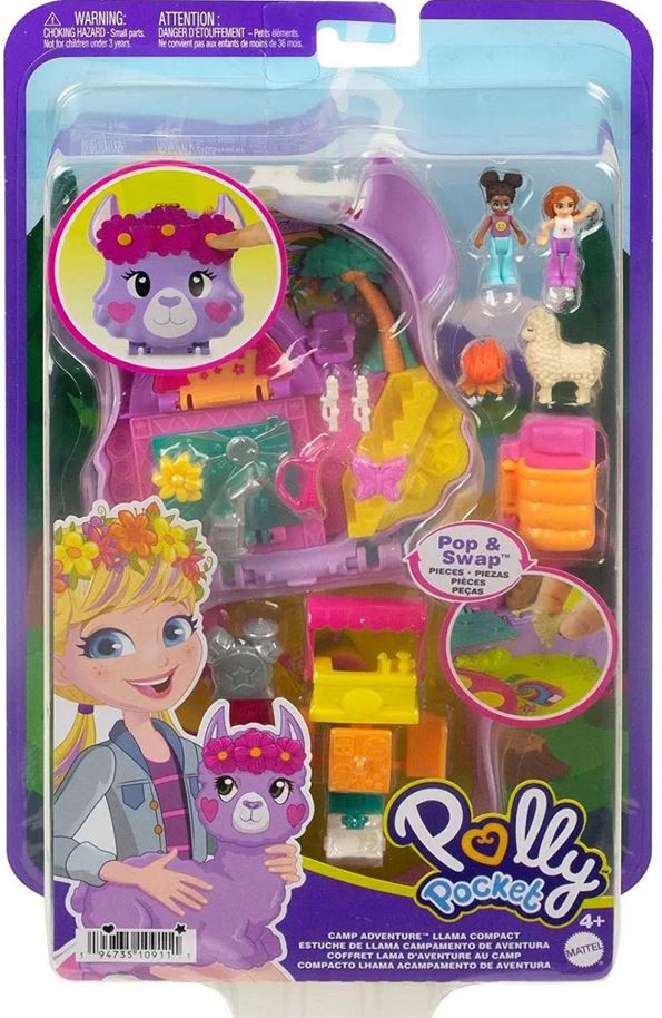 Egységár IgenKészülj fel egy felejthetetlen kempingezésre a Polly Pocket™ Camp Adventure™ Llama Compact-tal! Ez a csodálatos, lámát formázó kompakt játék rózsaszín virágkoszorúval és kellemes tapintású felülettel végtelen szórakozást nyújt. Nyisd ki, és fedezd fel a két mikro babát, öt mozgatható funkciót és 13 kiegészítőt, amelyek között néhány Pop and Swap™ funkcióval rendelkezik. Állítsd fel a tábort, süss s'morest a barátokkal, vagy táncolj a színpadon — a gyerekek gyűjthetik az összes Pocket World kompaktot, és bővíthetik a szórakozást! Ideális 4 éves kortól. Minden játék külön kapható, a készlettől függően. A színek és díszítések eltérhetnek.