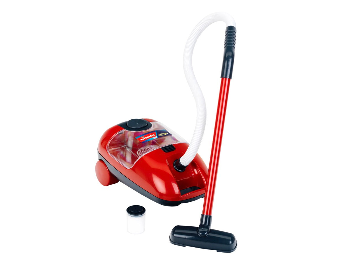 Akkumulátoros játék porszívó valódi funkcióval és hanggal, a jól ismert Vileda dizájnban készült. Tartozék egy doboz polisztirol golyókkal.